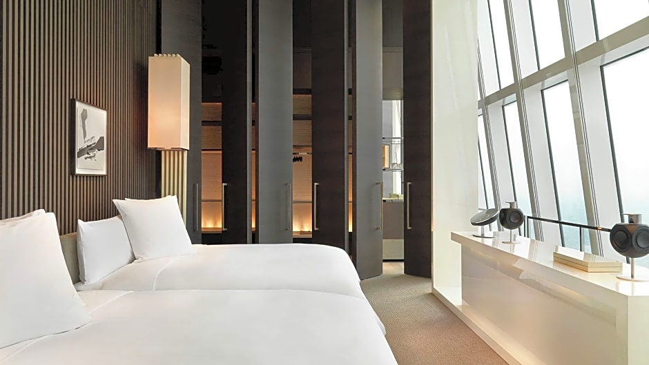 Located from Floor 79 to 84, the modern Chinese-style room with size of 66-80Sqr offers expansive Bund view in the heart of Shanghai. It features 2 single beds, walk-in dressing rooms and an private bathroom with a large rain shower, and deep-soaking tub. Amenities include 24-hour in-room dining, an in-room espresso machine, a flat-screen TV and free Wi-Fi.
